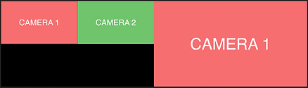 You’ll see your camera feed options on the left side of the screen and the edit preview on the right side. When you hit play, you’ll see a yellow box around whichever camera is selected.